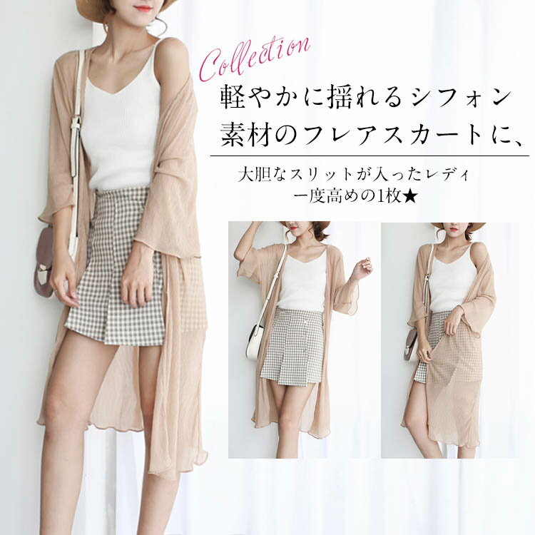 シフォンカーディガン [2色]シースルーカーディガン ロング UVカット 夏 レディース ゆったり サマーカーディガン トップス 大きいサイズ アウター 薄手 冷房対策 肩掛け 羽織り 長袖 可愛い 羽織物