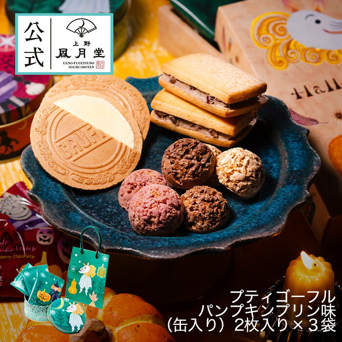 ハロウィン 秋 プチギフト 焼き菓子 【上野風月堂公式 プティゴーフル パンプキンプリン味(缶入り)2枚入り×3袋】ゴーフル ゴーフレット クッキー ビスケット 洋菓子 手土産 景品