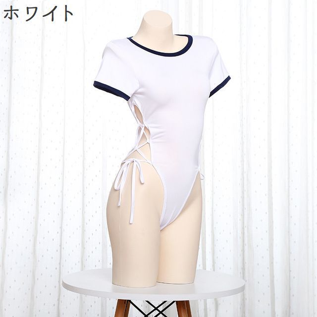 送料無料 セクシーコスチューム レオタード 体操服風 レディース ハイレグ 白 サイド ナイトウェア セクシー下着 インナー SEXY