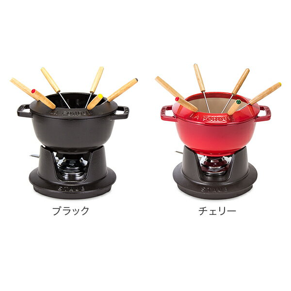 商品名ストウブ【Staub】フォンデュセット 18cm 40511-97 カラーブラック、チェリー サイズ約直径18×高さ10cm、長さ24cm(取っ手含む)容量:1.6L重量:約2.3kg 素材ホーロー 商品について【フォンデュセット】シンプルでかわいらしいデザインのフォンデュ鍋です。